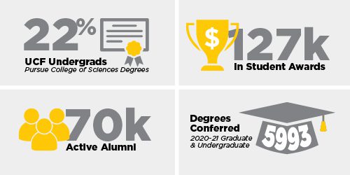 UCF is one of the most innovative public universities in the nation, as named by the U.S. News & World Report. The College of Sciences helps to lead the way with a focus on transformative industry partnerships and student success that enhance social mobility in the Central Florida community and beyond. From top online Psychology bachelor’s degrees to interdisciplinary science programs, the College of Sciences provides a unique, world-class educational experience for students.