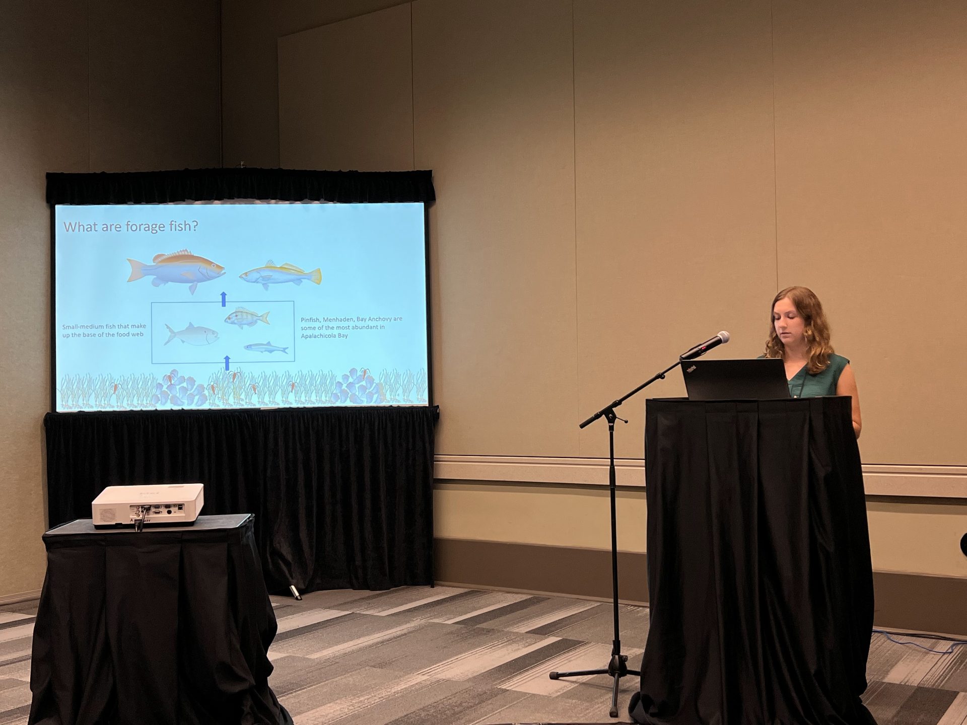 Kira giving a presentation at the Gulf of Mexico Convention (GomCon) 2022.