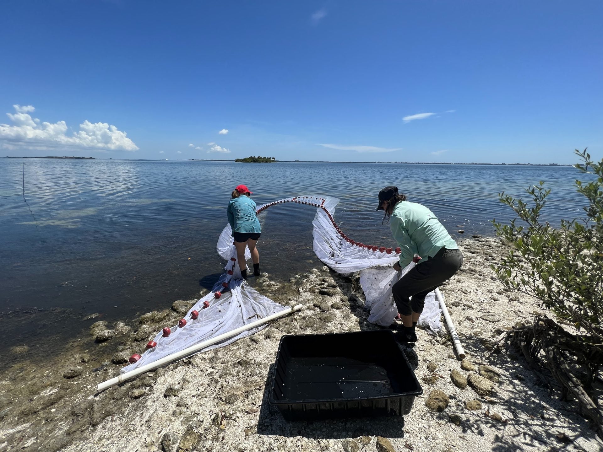 Kira and Michelle deploying a seine net.