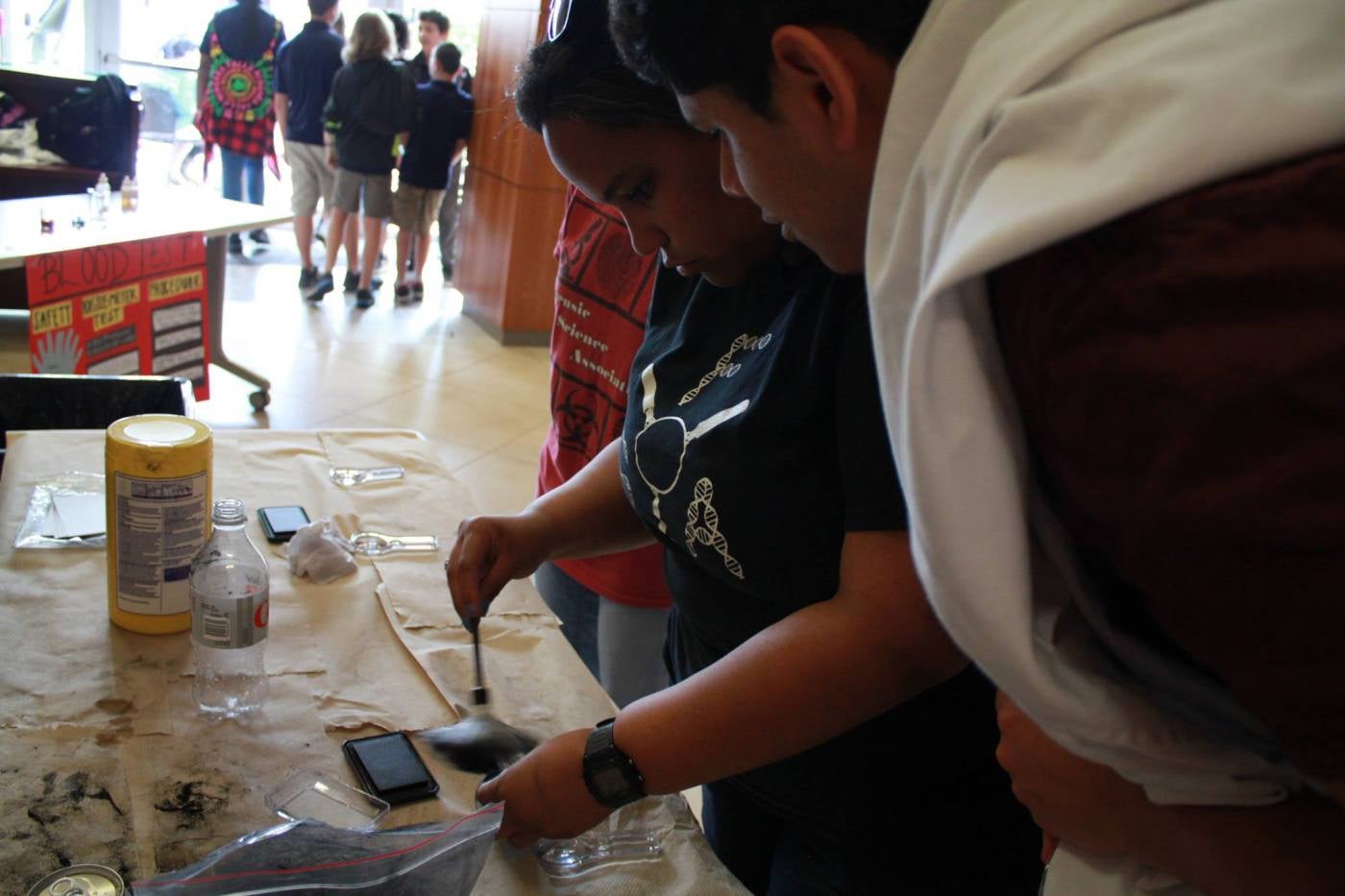 In addition to guest speakers and going to the AAFS conference, FSA also reaches out to do many volunteer activities. We’ve gone to the Greenwood Cemetery for cleanup, Matanzas High School for a murder mystery event, United Against Poverty to assist with managing the food pantry, the Paws for Peace Walk to raise awareness for and end abuse…the list goes on! Perhaps the biggest event we volunteer for is UCF’s own STEM Day, a day entirely dedicated to educating and engaging young students in the wonders of science, technology, engineering, and math. Hundreds and hundreds of kids ranging from elementary to high school come to experience what the forensics, chemistry, and physics departments have to offer. FSA runs demonstrations like UV tents, microscopy tables, blood presumptive tests, and fingerprinting.