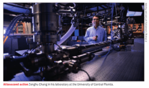 Dr. Zenghu Chang, UCF Distinguished Professor of Physics & Optics, recorded the shortest pulse of light in his UCF lab. Physics World recently interviewed Chang for their publication, which you can view here. Physics World is the British equivalent of Physics Today, which is published in the US. “Dr. Chang’s success in making ever-shorter light pulses helps […]