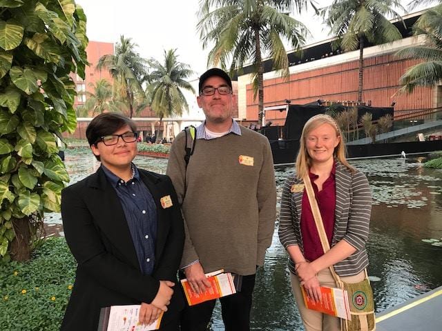 From left to right: Ariel Olson; Nick Sciullo, J.D., Ph.D.; and Lakelyn Taylor enjoying sights while in Kolkata.