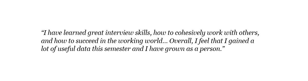 “Career Readiness Solution helped to prepare me for my employment search after graduation.”